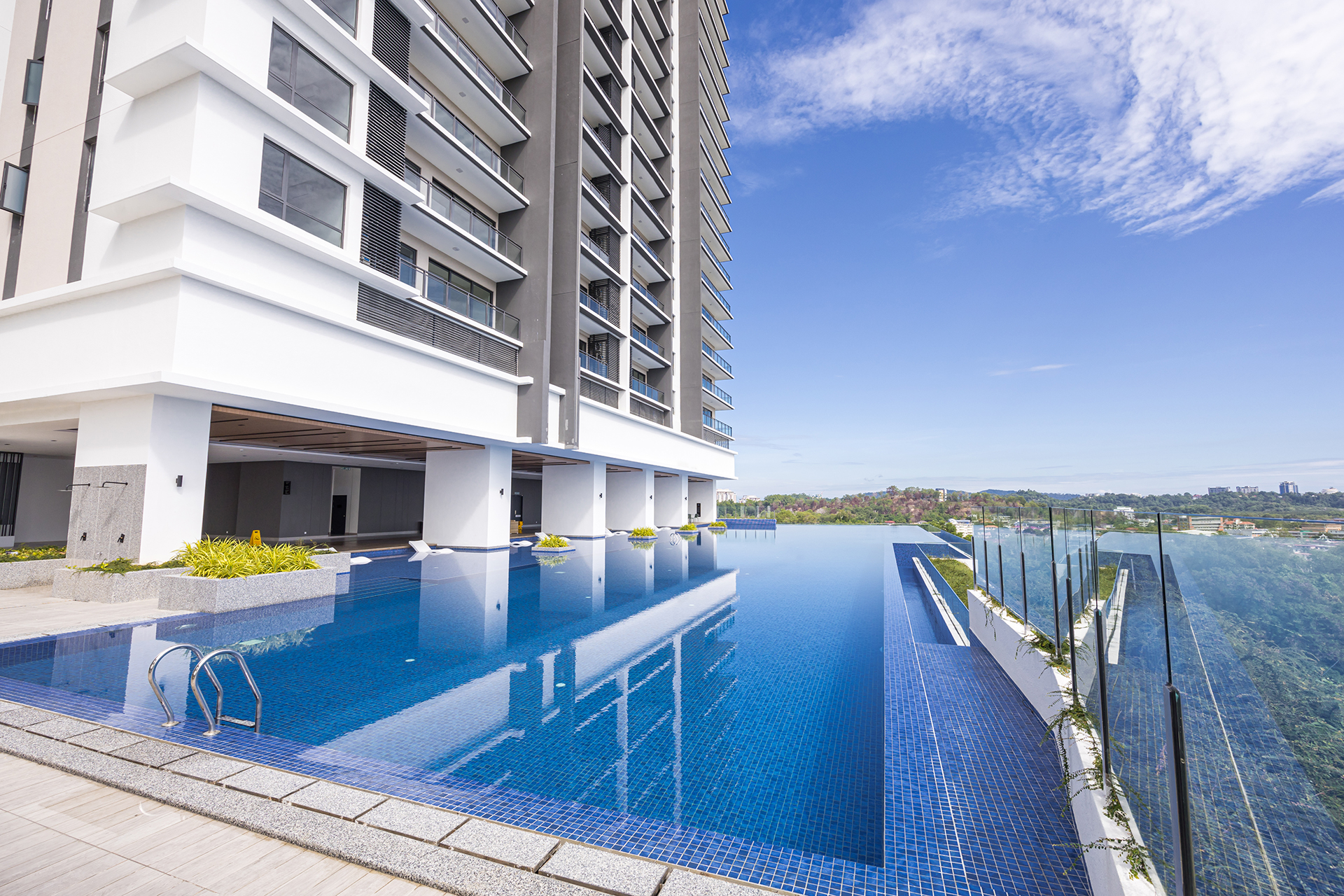50M Lap pool, Jacuzzi, Splash pool, Pavilions, Sauna & Steam rooms, Kid’s play area, Function rooms 1 & 2, Gymnasium, Dance studio, Lounge deck, Lawn & Garden, Private dining, Library, Sky bar & lounge