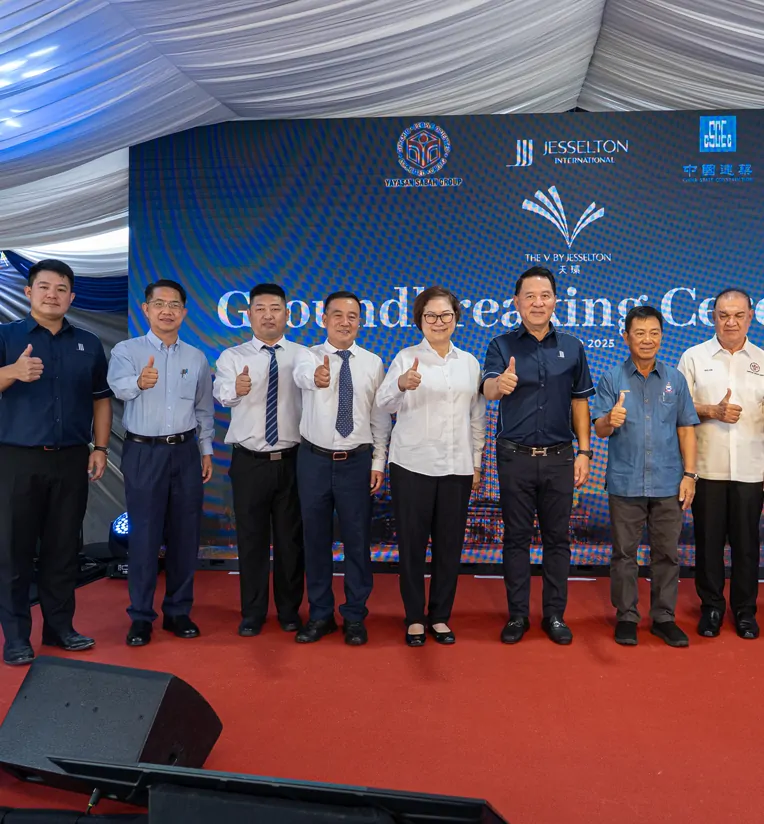 6 October 2025, Kota Kinabalu — Jesselton International officially broke ground on The V by Jesselton, a RM1.5 billion integrated waterfront development at Likas Bay, officiated by YB Datuk Seri Panglima Dr. Joachim Gunsalam.